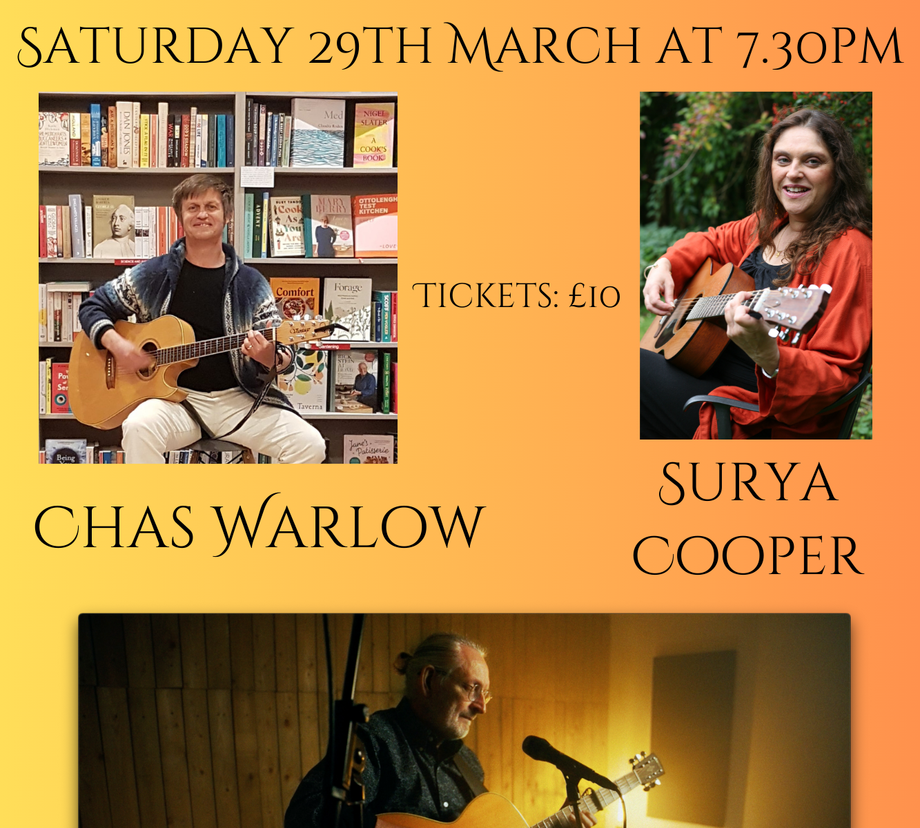Three for the Price of One! Join singer-songwriters Chas Warlow, Surya Cooper and Keith Buckman for a fantastic evening of original music.